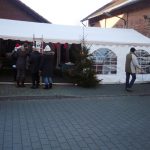 Nach dem großen Erfolg im letzten Jahr hatte sich die Dorfgemeinschaft Wiedelah e.V. (DGW) entschlossen, jedes Jahr einen Weihnachtsmarkt in Zusammenarbeit mit mehreren Wiedelaher Vereinen und Privatpersonen zu veranstalten. In drei Sitzungen im Laufe des Jahres 2016 wurde der Ablauf und das Programm besprochen. Das Studio Regenbogen stellte den Werbeflyer her, der im ganzen Dorf verteilt worden ist. Am 03.12.2016 war es dann soweit. Der zweite Weihnachtsmarkt wurde am Samstag den 03.12.2016 um 11:00 Uhr am und im katholischen Pfarrheim eröffnet. Am Vortag waren viele fleißige Hände am Werk, um ein großes Zelt von Fritz Holzbach und ein kleineres Zelt von der DGW aufzubauen. Das Schwierigste war die Stromverteilung, denn manche Stände benötigten Strom und die Zelte mussten innen auch mit einer Beleuchtung ausgestattet werden. Mit Unterstützung von Wilfried Höbbel und Ulli Goldau konnte dieses Problem bald gelöst werden. Die Freiwillige Feuerwehr hatte die Arbeit mit technischem Know-how unterstützt. Die hilfsbereiten Frauen der DGW hatten in der Zwischenzeit das Pfarrheim gemütlich hergerichtet. Die Zelte und das Pfarrheim wurden mit viel weihnachtlichem Grün und Lichterketten geschmückt.