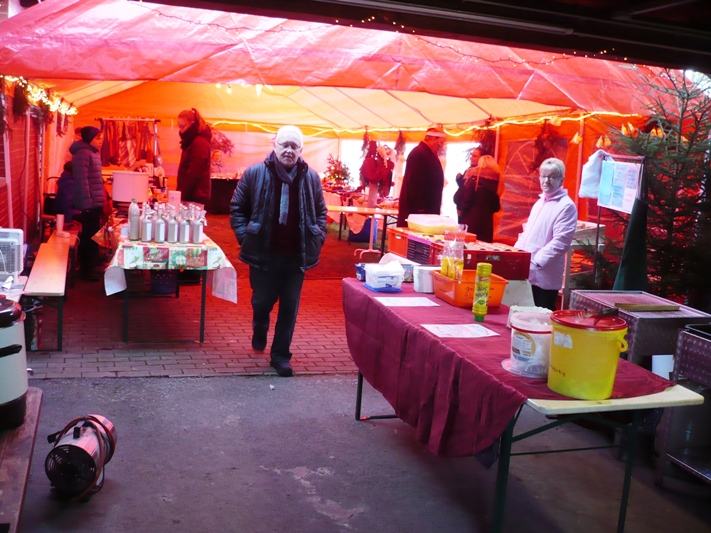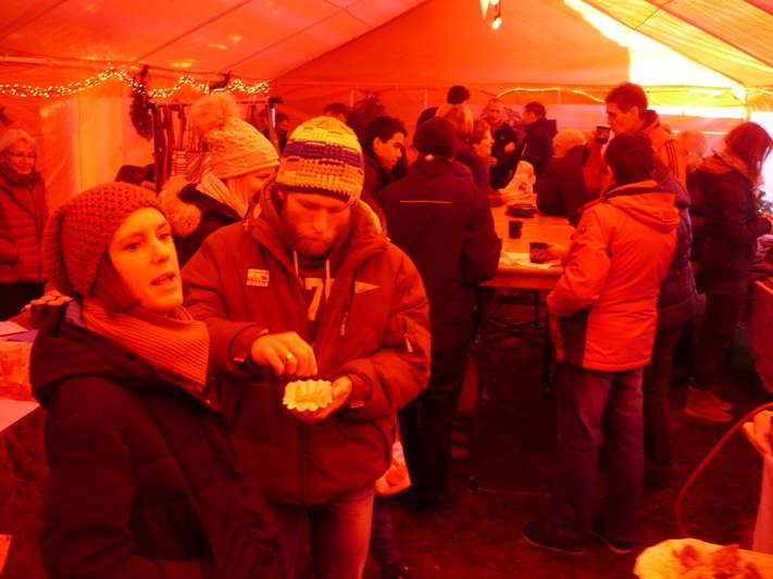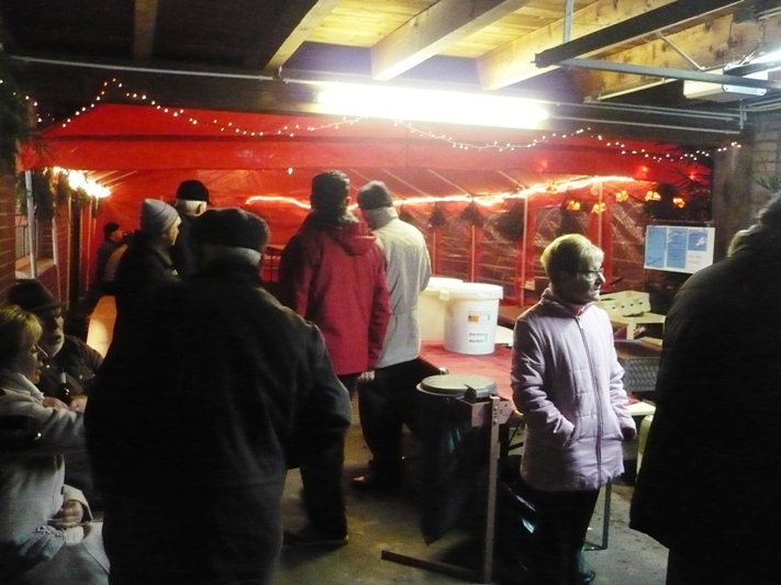 Am späten Nachmittag brach allmählich die Dämmerung herein und die Beleuchtung des Weihnachtsmarktes kam nun voll zur Geltung. Die Besucher machten sich allmählich zufrieden auf den Heimweg und die DGW konnte ein sehr befriedigendes Fazit ziehen. Im nächsten Jahr soll wieder ein Weihnachtsmarkt aufgezogen werden.