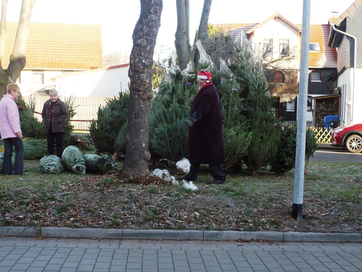 Am Samstagmorgen konnten die Vereine und Privatpersonen mit ihren selbsthergestellten Produkten dann ihre Stände einrichten. Jetzt wurden auch die selbstgebackenen Kuchen und Torten angeliefert, die von vielen Wiedelaher Hausfrauen hergestellt worden sind, 28 Stück an der Zahl. Gegenüber des Pfarrheimes wurden die Weihnachtsbäume aufgestellt sowie eine große Feuerschale, an der die jugendlichen Besucher ihre kostenlosen Stockbrote unter Aufsicht backen konnten.