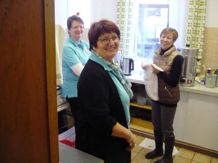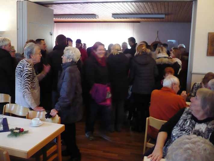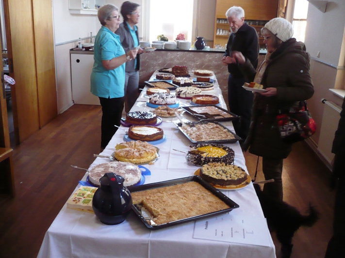 Anschließend begann das Kaffeetrinken mit selbstgebackenem Kuchen und selbsthergestellten Torten. Das Pfarrheim war bis auf den letzten Platz besetzt. Die Damen der DGW hatten alle Hände voll zu tun, um die Nachfrage zu bedienen.