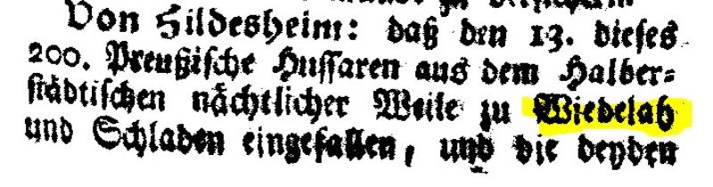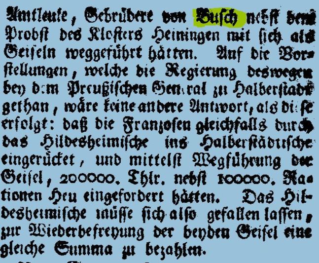 Bericht aus dem „Wienerischen Diarium“ über die Entführung des Amtmannes Busch aus Wiedelah