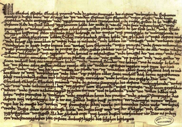 Ein Darlehensvertrag zwischen der Äbtissin Elisabeth, der Priorin Elisabeth, dem Konvent des Klosters Wöltingerode und dem Probst Gheverd zu Wöltingerode