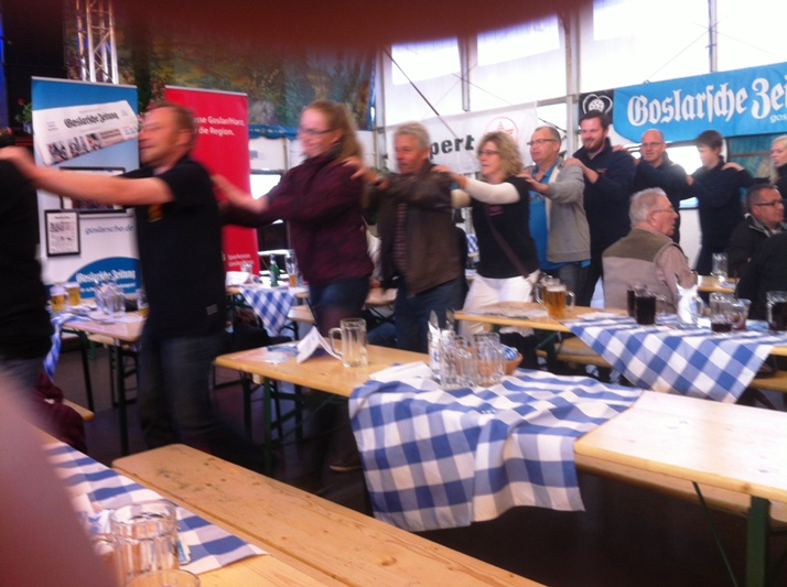 Die ganze Veranstaltung dauerte von 17:00 Uhr bis 20:00 Uhr. Begleitet wurde der Abend von der Partyband „Die Bamberger“ mit dem Bremer Diskjockey „Teddy“. Sie heizten den Besuchern ganz schön ein, sodass zum Abschluss sogar eine Polynäse durch die Tischreihen gemacht wurde.