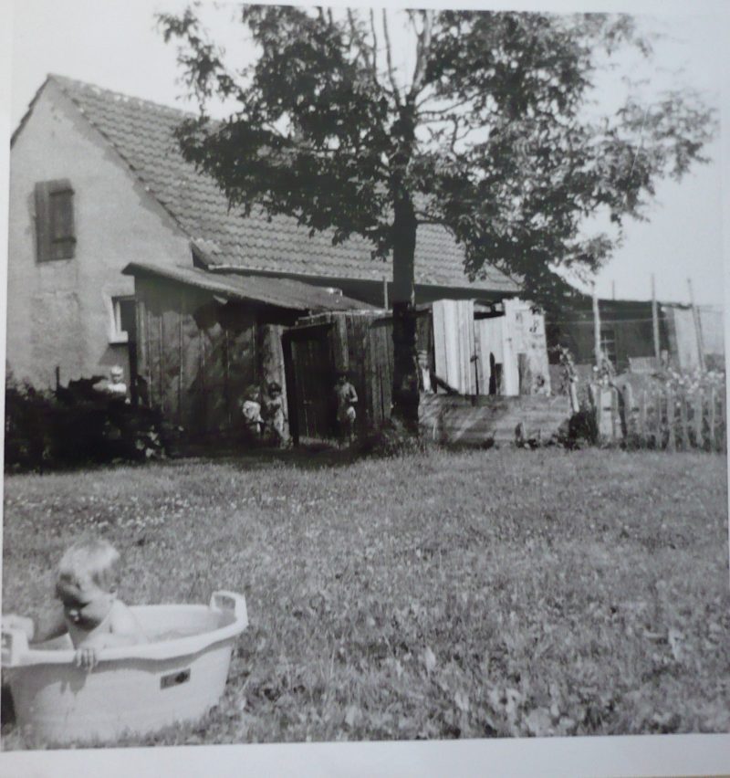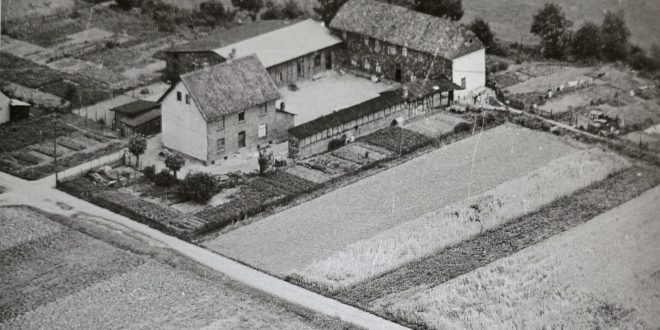 Die Papiermühle Wiedelah um 1940 An den Bäumen entlang fließt der Eckergraben / das Mühlwasser