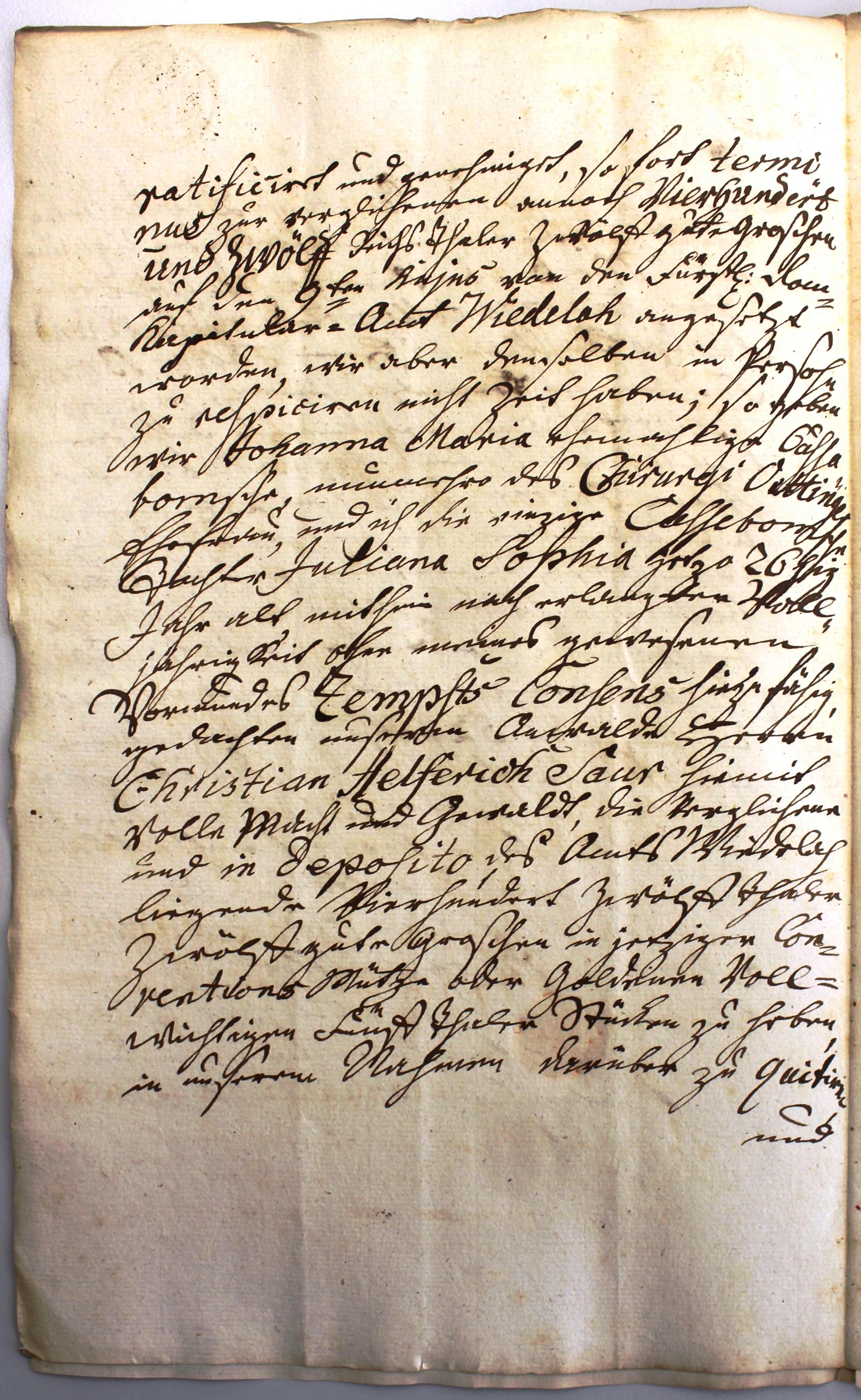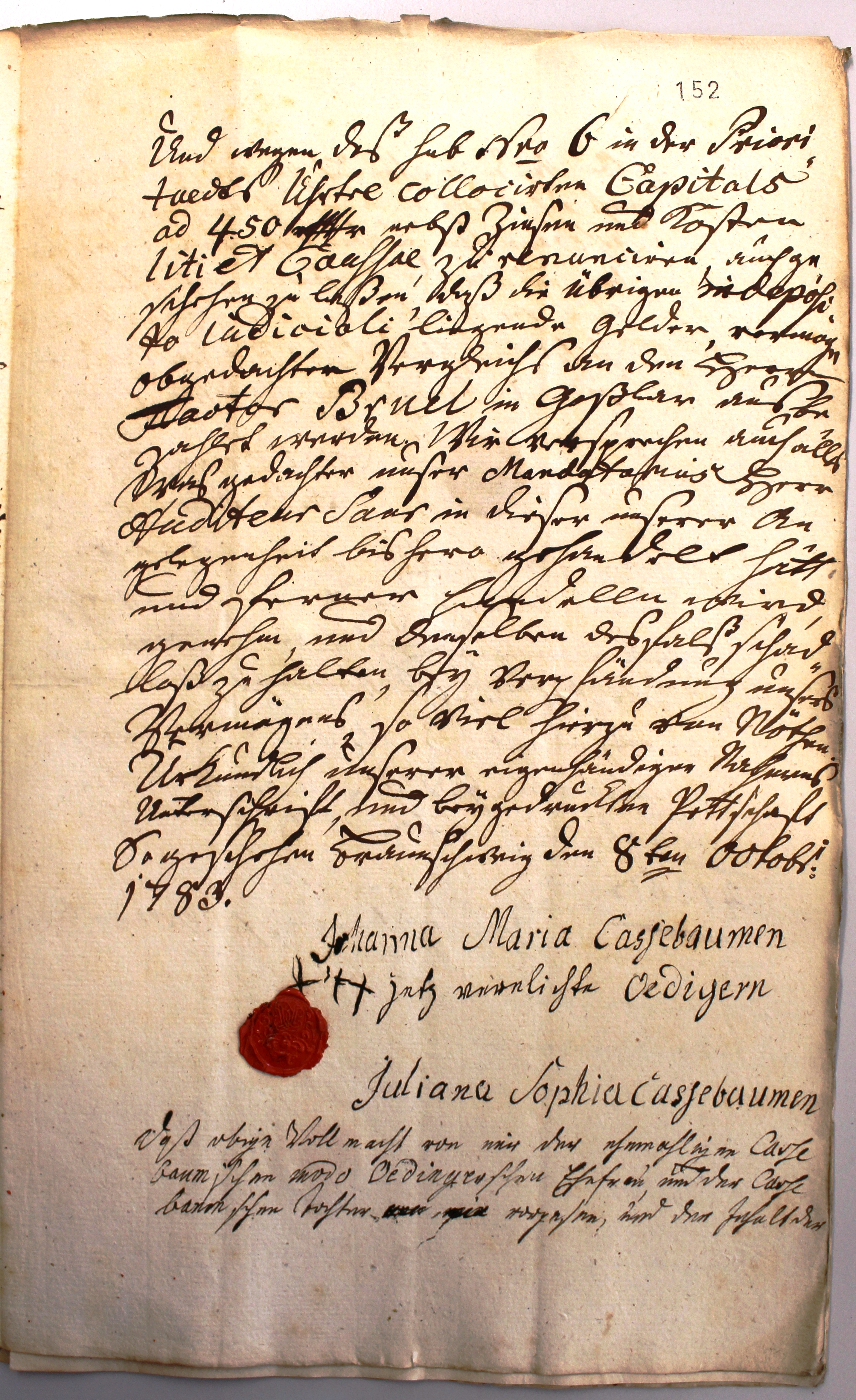 „Noch ist die Confirmation (Bestätigung) erteilt über 400 ??? Capital sub dato den 10. Juli 1759.“