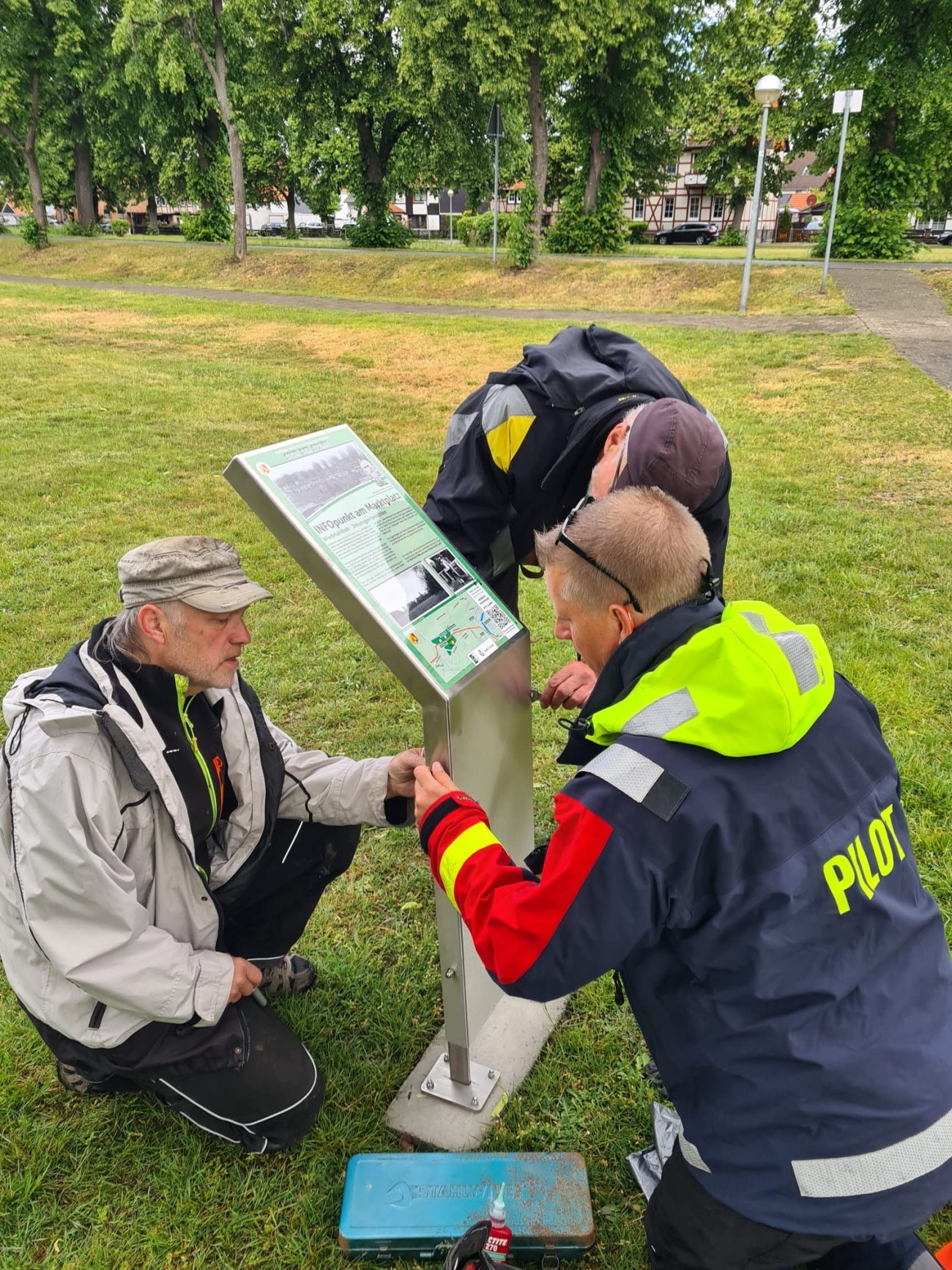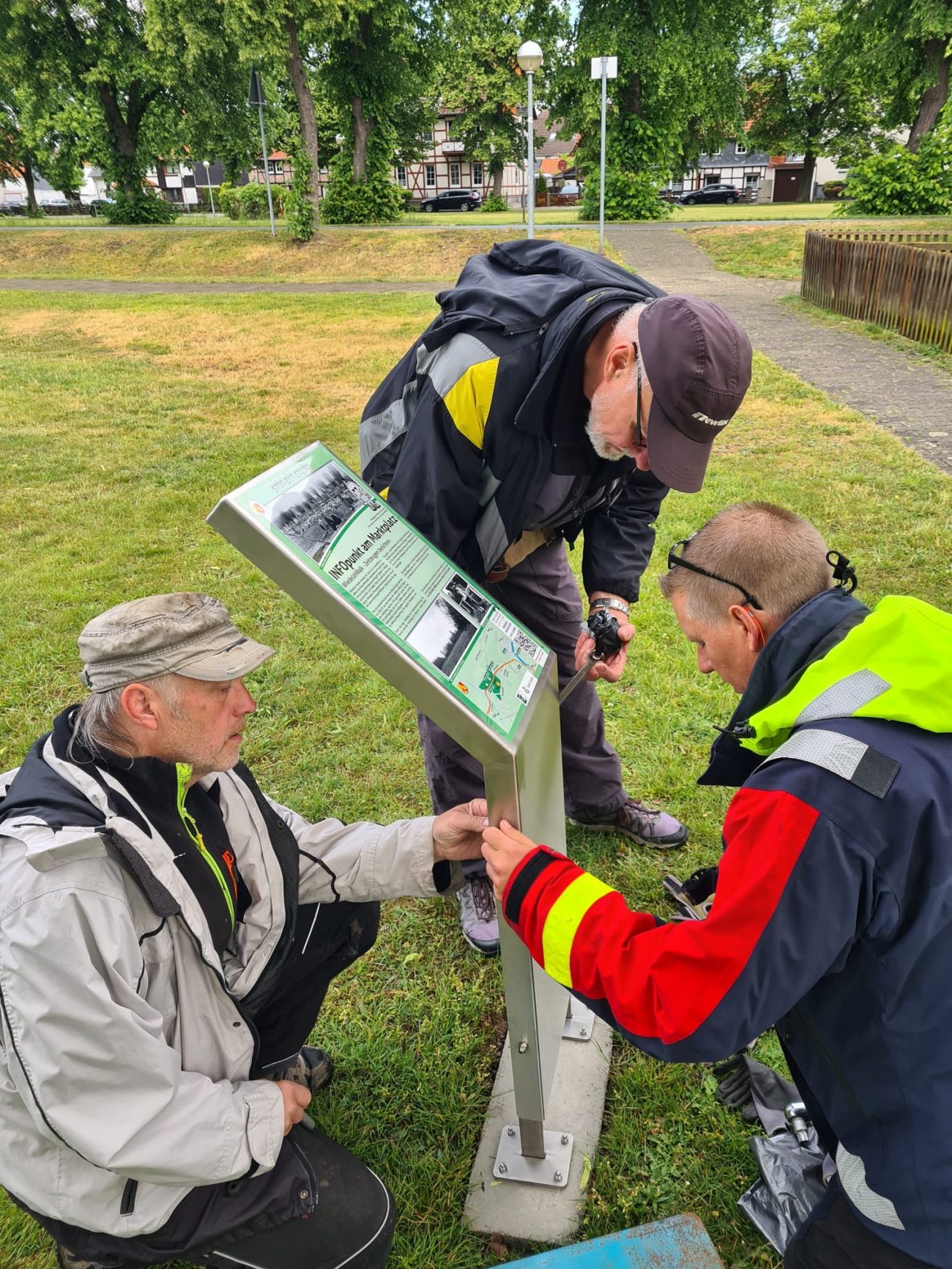 Das Ergebnis: Zehn liebevoll gestaltete Informationstafeln, die entlang eines Spazierwegs aufgestellt wurden und die Besucherinnen und Besucher auf eine spannende Reise durch die Geschichte unseres Dorfes mitnehmen. Themen sind unter anderem die Harlyburg und das ehemalige Krankenhaus in Wiedelah. Viele der Tafeln bieten zusätzlich digitale Inhalte zum Hören und Entdecken.