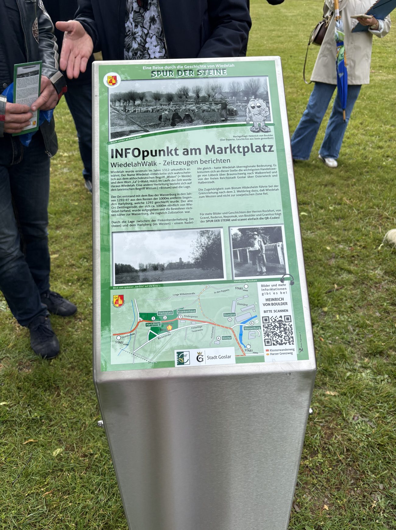 In der letzten Juniwoche war es so weit: Ortsvorsteher Uli Bock konnte im Beisein von Oberbürgermeisterin Urte Schwerdtner den neuen Informationsweg „Spur der Steine – ein Spaziergang durch die Geschichte Wiedelahs“ feierlich eröffnen.