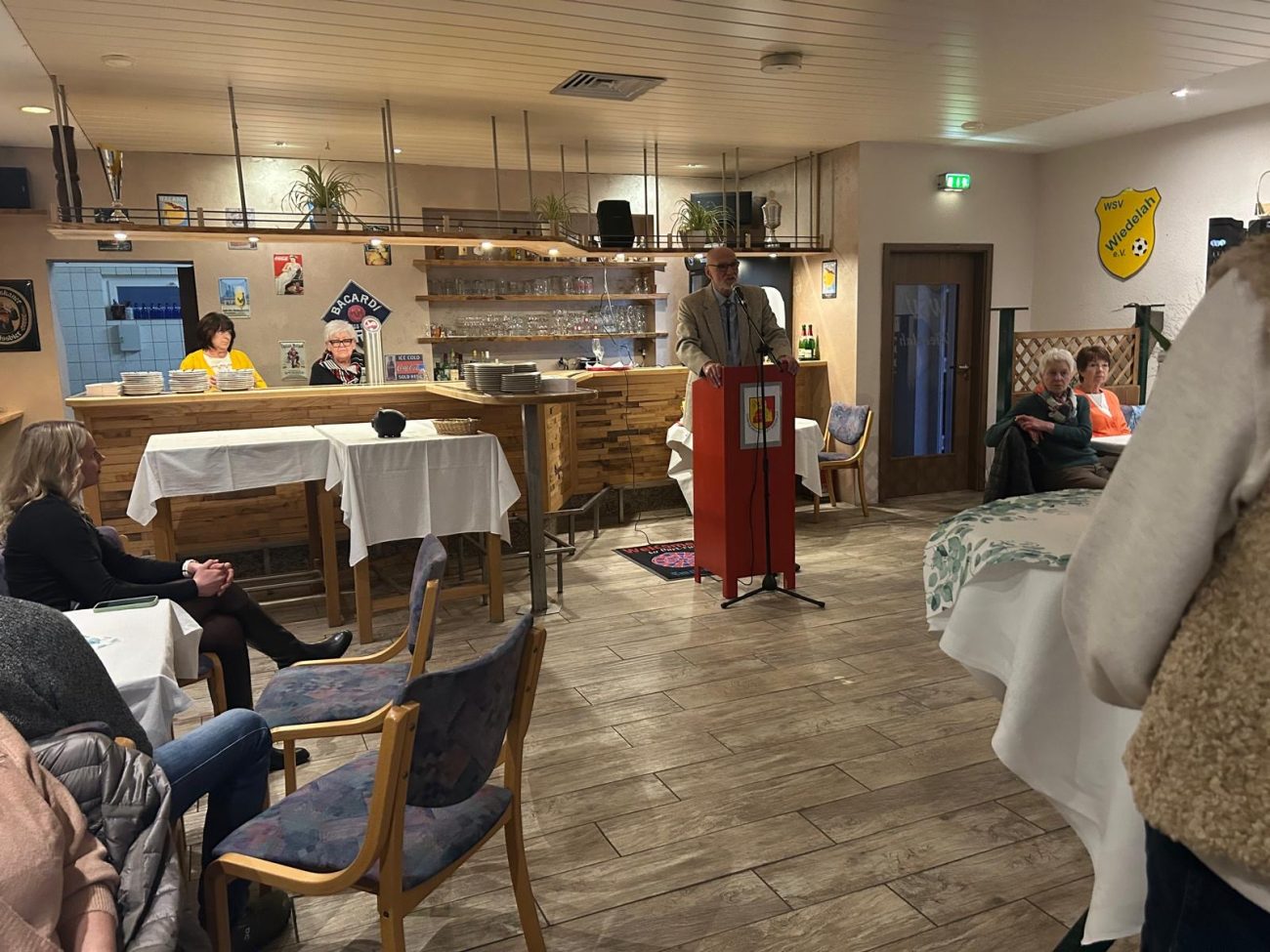 Ein besonderer Höhepunkt des Abends war der Vortrag von Michael Schüler, Ortsheimatpfleger von Wiedelah. In seinem sehr anschaulichen und informativen Beitrag berichtete er über das ehemalige Dorf Dettlingerode, aus dem das heutige Wiedelah entstanden ist. Darüber hinaus gab er spannende Einblicke in seine Arbeit und die aufwendige Recherche historischer Dokumente. Sein Vortrag stieß auf großes Interesse und leistete einen wertvollen Beitrag zur Ortsgeschichte.